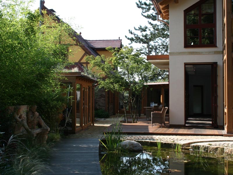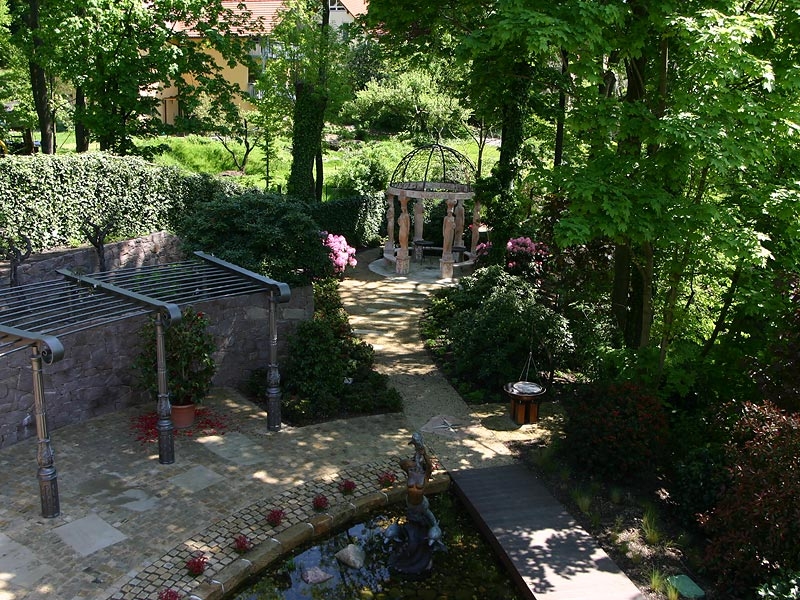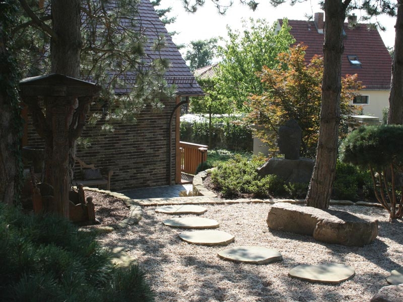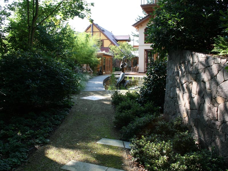 Den 1. Preis des sächsischen Garten- und Landschaftsbaus in der Kategorie „Private Hausgärten“ erhielten wir am 23.10.2008 für diesen traumhaften Garten. Der Garten hat einem Gartenbereich, der einen parkähnlichen Charakter hat. Üppig blühende Rhododendren unter altem Baumbestand, ein Seerosenteich, zahlreiche Plätze zum Verweilen prägen diesen Gartenteil. Ein weiterer Gartenteil ist im Bauerngartenstil von uns geplant und gebaut worden. Besucher des Gartens werden im asiatisch gestalteten Bereich empfangen. Trotz dieser scheinbar sehr konträren Stile, ist es gelungen diese Zonen harmonisch miteinander zu verbinden, so dass jeder, der diesen Garten betritt, die besondere Ausstrahlung des Gartens verspürt.