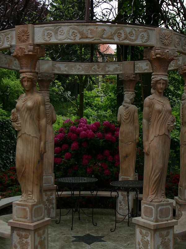 Diese Damen laden ein, den Gartenpark zu ihren Füßen zu genießen.
