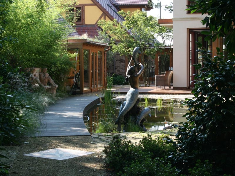 Nahe beim großzügigen Gartenteich lässt es sich gut verweilen.