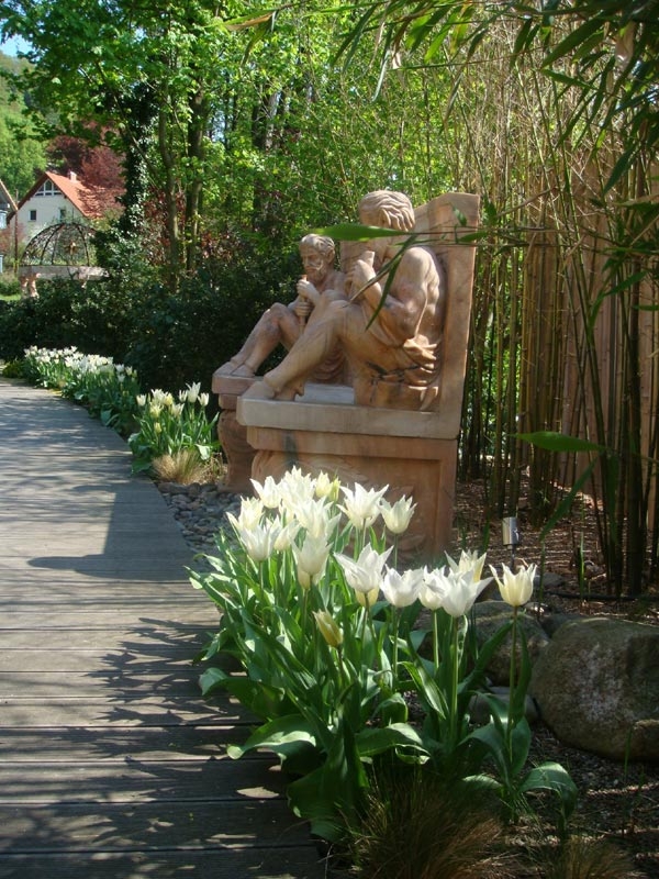 Dieser Garten ist wirklich etwas ganz Besonderes! Immer wieder muss der Besucher verweilen, um die Kunstwerke zu betrachten.