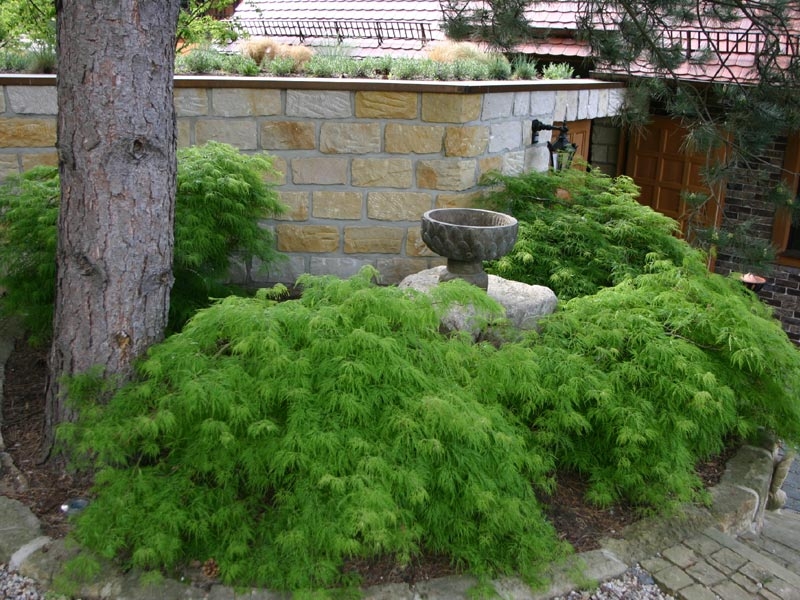 Der japanische Teil des Gartens wurde natürlich mit passenden Solitärs wie dem japanischem Zierahorn gestaltet
