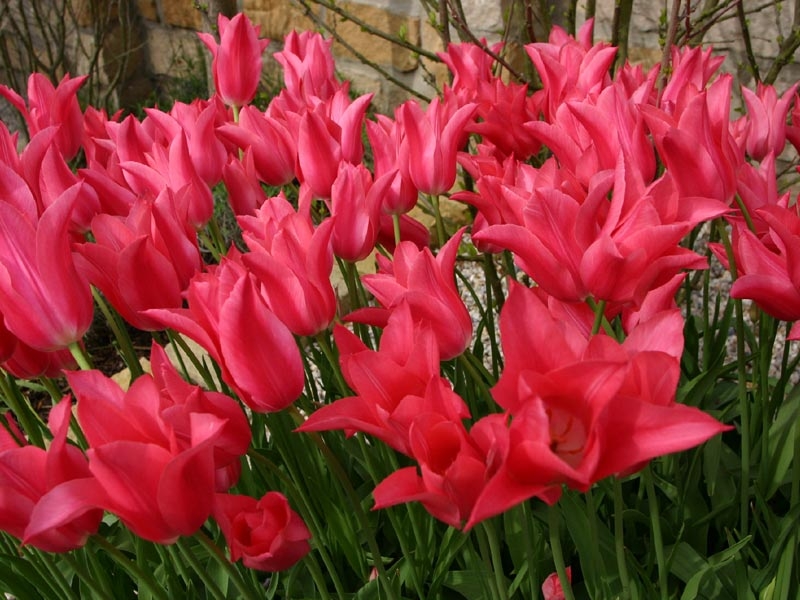 Insgesamt 3500 Blumenzwiebeln haben wir im Herbst im ganzen Grundstück gesteckt. Flächige Blütenmeere zum Beispiel mit der lilienblütige Tulpe `Mariette`belohnen diese Arbeit.