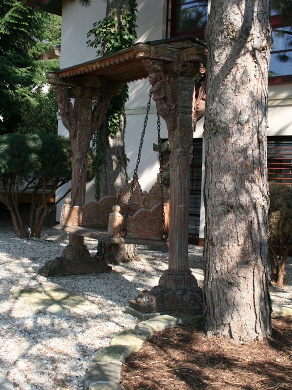 Passend zum asiatischen Teil des Gartens wirkt diese Schaukel hier genau richtig.