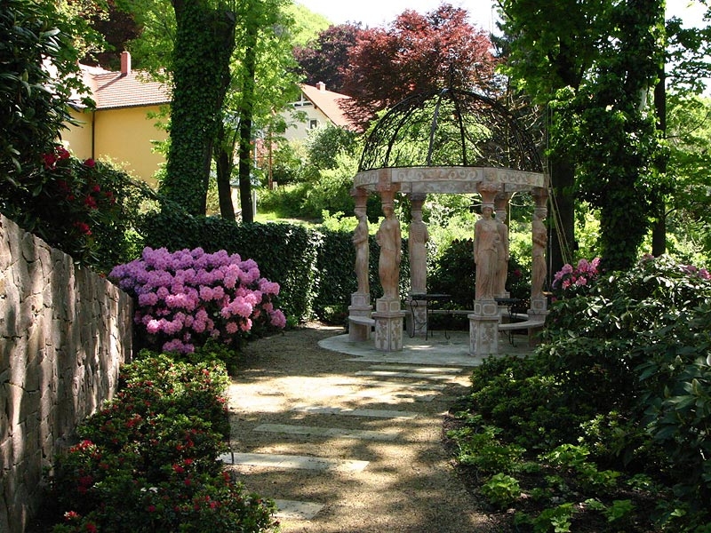 Den 1. Preis des sächsischen Garten- und Landschaftsbaus in der Kategorie „Private Hausgärten“ erhielten wir am 23.10.2008 für diesen traumhaften Garten. Der Garten hat einem Gartenbereich, der einen parkähnlichen Charakter hat. Üppig blühende Rhododendren unter altem Baumbestand, ein Seerosenteich, zahlreiche Plätze zum Verweilen prägen diesen Gartenteil. Ein weiterer Gartenteil ist im Bauerngartenstil von uns geplant und gebaut worden. Besucher des Gartens werden im asiatisch gestalteten Bereich empfangen. Trotz dieser scheinbar sehr konträren Stile, ist es gelungen diese Zonen harmonisch miteinander zu verbinden, so dass jeder, der diesen Garten betritt, die besondere Ausstrahlung des Gartens verspürt.