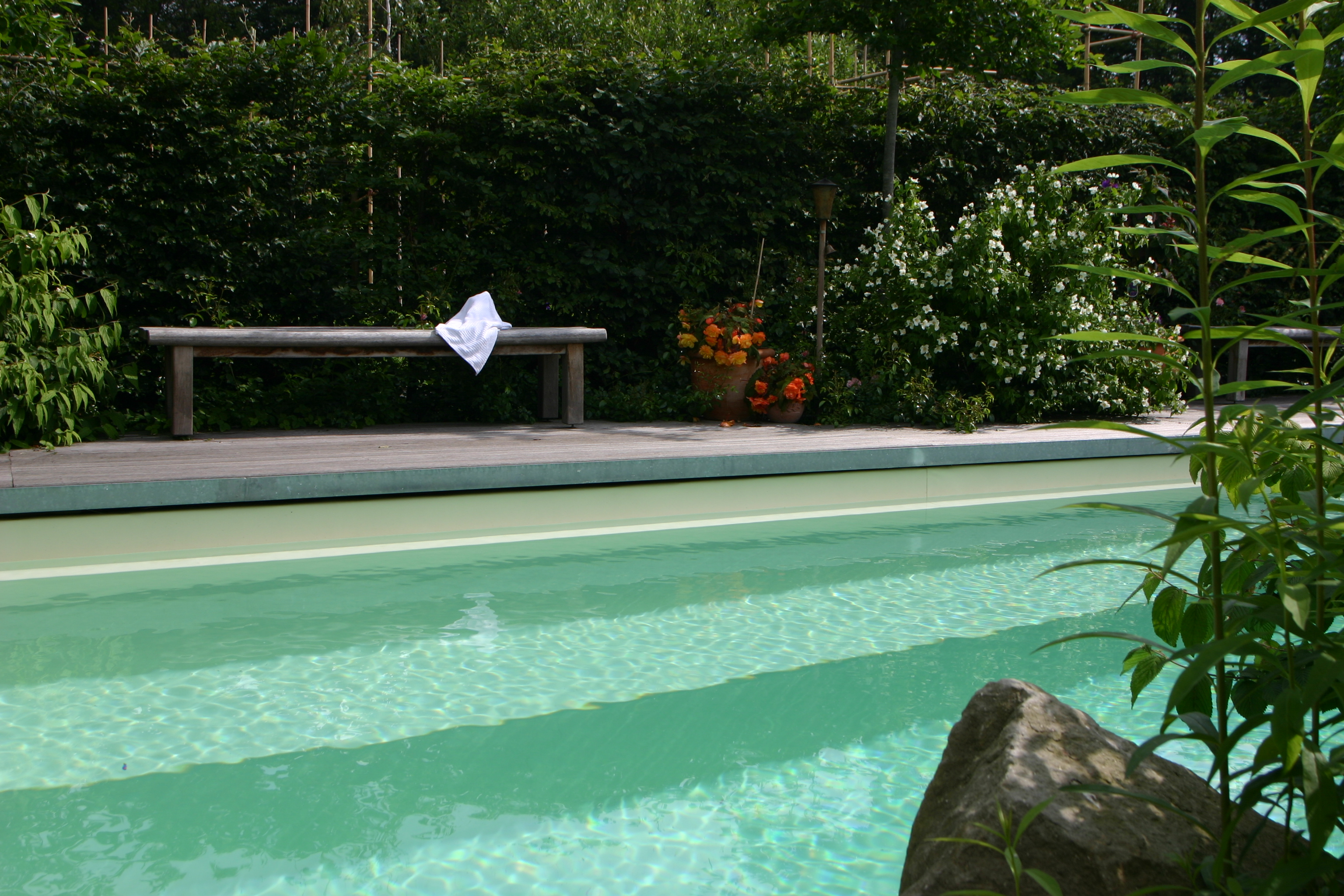 Einen Schwimmteich kann man ähnlich gestalten und nutzen wie einen Swimmingpool. Der entscheidende Unterschied besteht darin, das Pflanzen und nicht Chlor das Wasser sauber halten und reinigen. Eine Oase für Ihre Haut.