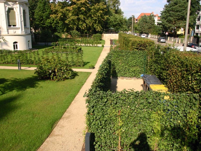 Der Müllplatz verschwindet in unserem Beispielsbild hinter der mobilen Efeuhecke , eine sehr ansprechende Lösung dieses leidigen Themas!